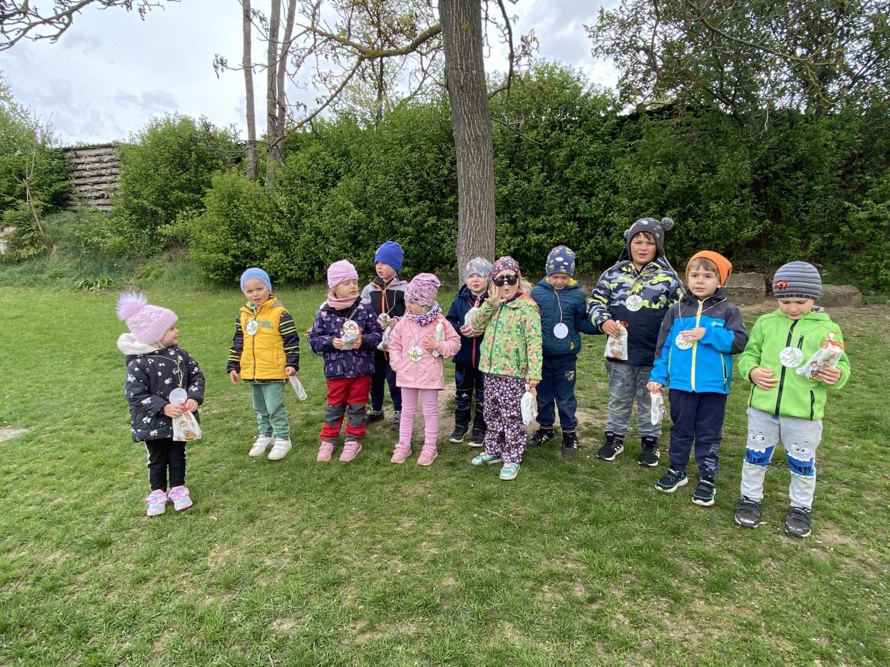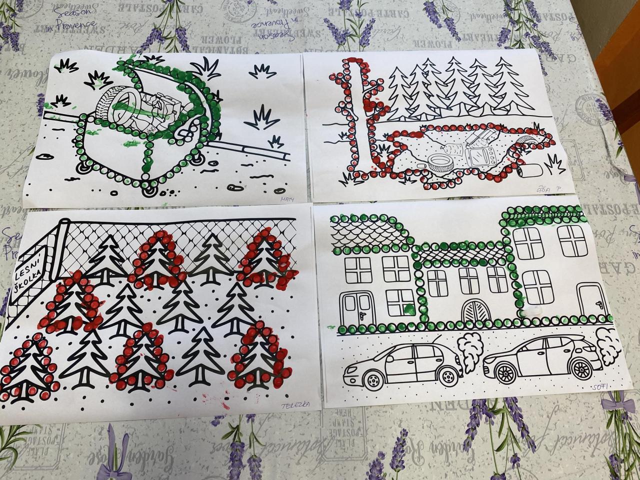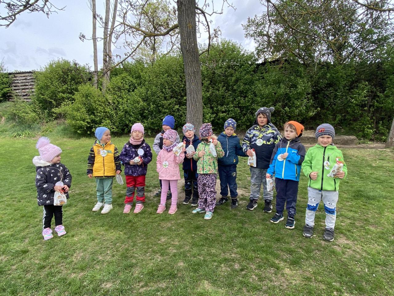 V pátek 19. dubna jsme měli ve školce projektový den věnovaný naší planetě Zemi. Po příchodu do školky si děti vytečkovaly vatovou tyčinkou namočenou v temperové barvě obrázek. Následně při ranním cvičení obíhaly zeměkouli z papíru na rychlost. V environmentální výchově třídily odpadky do kontejnerů, skládaly tematické puzzle a plnily ÚKOLY Z LESA. Před odchodem ven všechny děti slíbily, že se budou k planetě chovat hezky a nebudou ji nevhodným chováním ničit. Svůj slib zpečetily otiskem své ruky. Pak už jsme se vydali ven k místním kontejnerům upevnit si nabyté poznatky, prošli jsme se parčíkem a všímali si krásné okolní přírody, stromů, keřů a květin. U lesíka za školou jsme plnili sportovní a další disciplíny. Za celodenní píli a snahu děti dostaly poklad, který si ovšem musely samy najít. Zasloužily si také medaile - ŘÁD SKŘÍŤULKY JAHŮDKY pro holky a ŘÁD SKŘÍTKA OŘÍŠKA pro kluky. Všem se dopoledne moc líbilo.