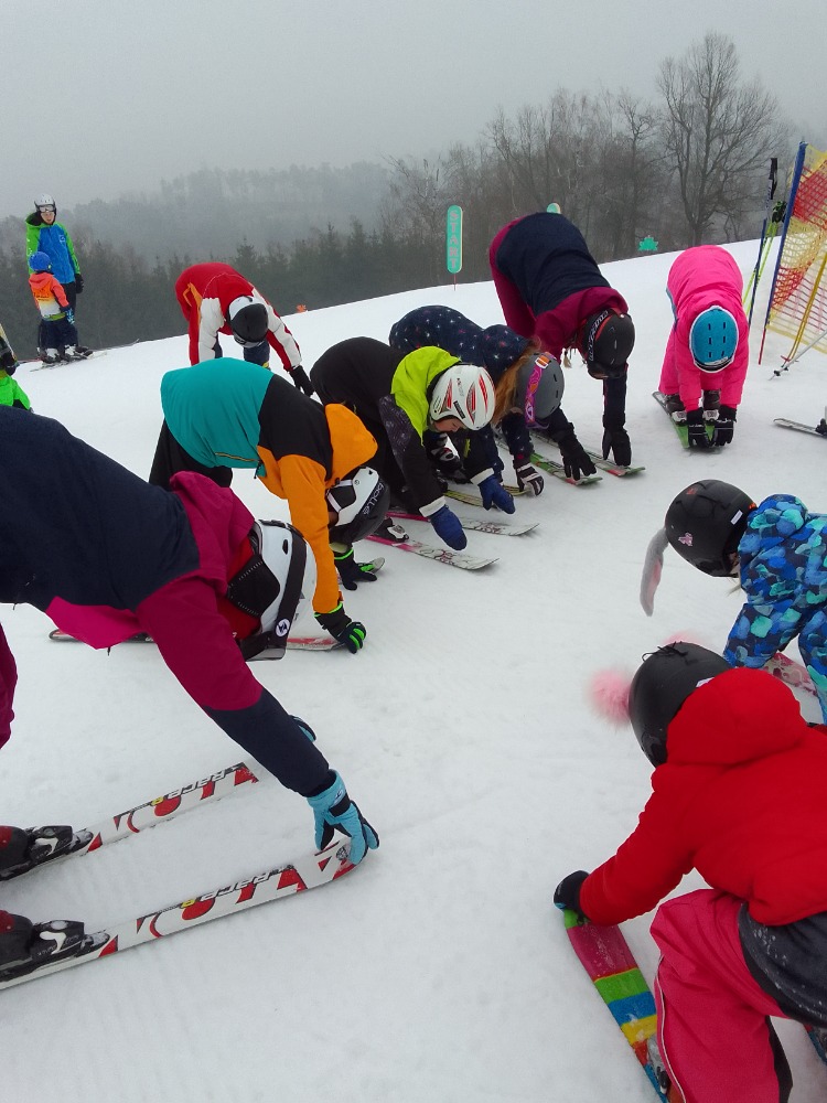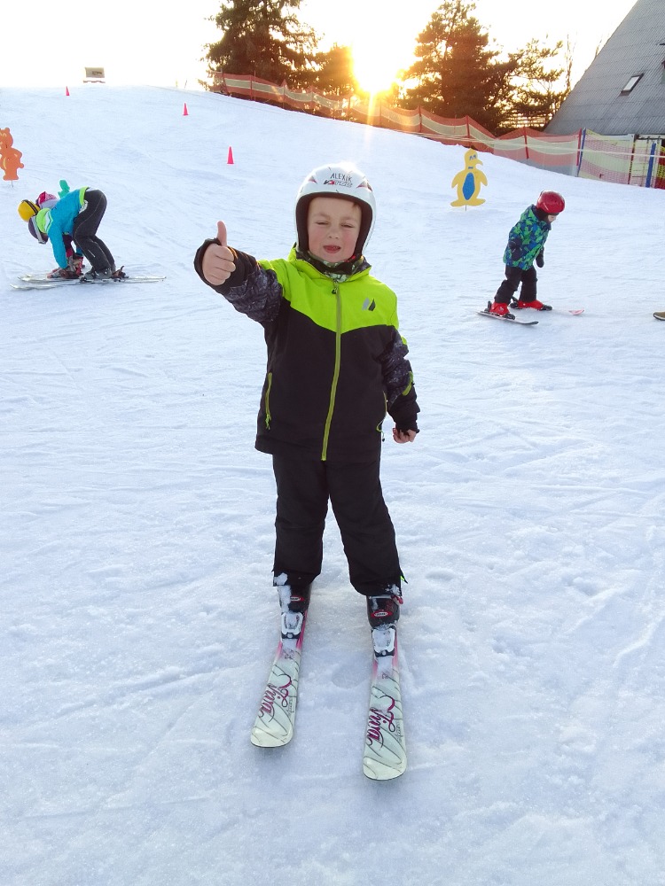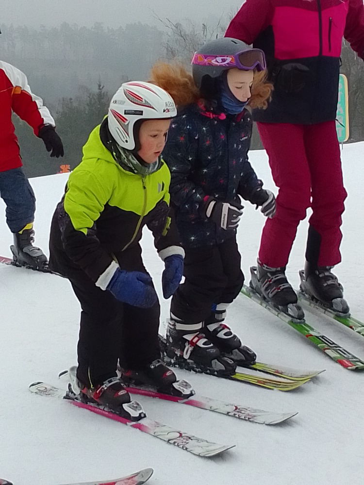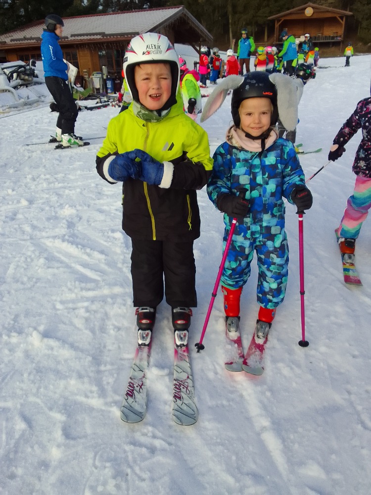 Poslední tři lednové dny strávili dva předškoláčci spolu s dětmi ze základní školy na lyžařském výcviku na Fajtově kopci, kde se jim náramně dařilo.