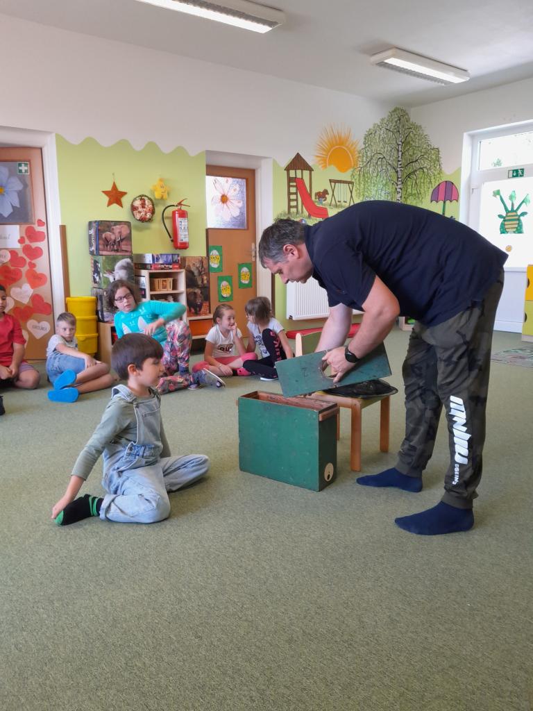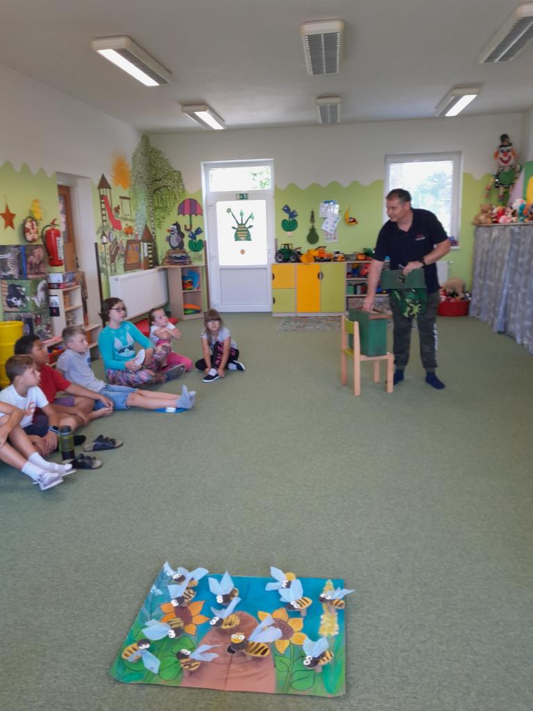 Dne 15. 9. 2023 nás ve školce navštívil pan Veleba a seznámil děti základní i mateřské školy s životem včel.