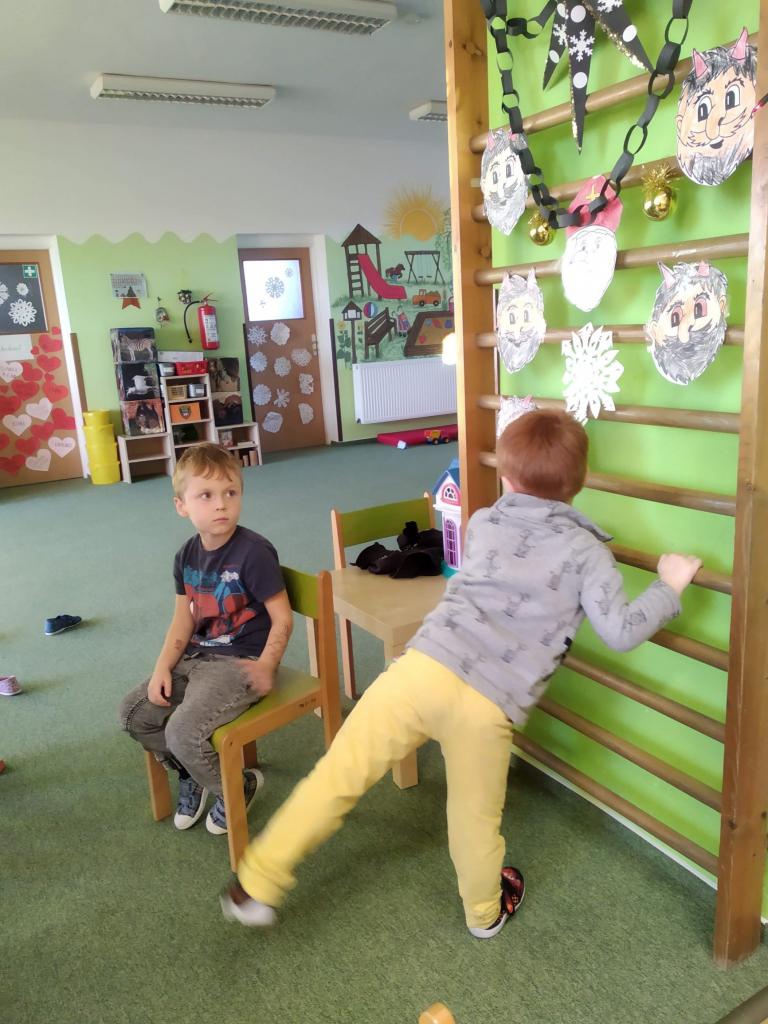 5. 12. se ve školce v dopoledních hodinách vyskytl čert! Naštěstí nepřišel sám, dělal jen spolu s andělem doprovod Mikuláši. Děti seděly na lavičce jako pěny a se zatajeným dechem poslouchaly, kdy už uslyší to mikulášské zvonění.