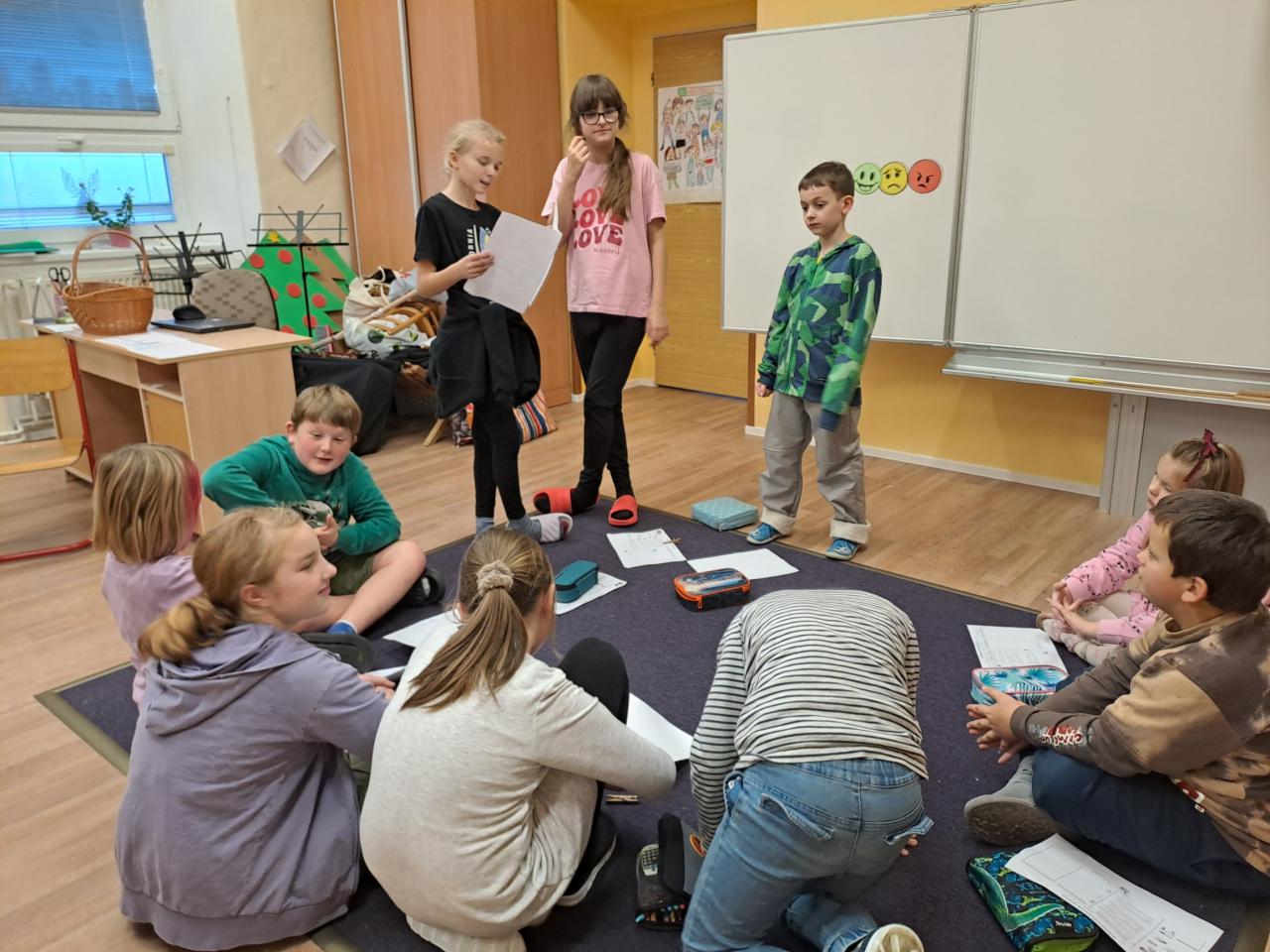 Na závěr každého dne pak každá skupina ostatním prezentovala svoji práci. Děti říkaly, jak se jim pracovalo, jak se práce dařila/nedařila a také dávaly ostatním skupinám doporučení, co mají udělat lépe.