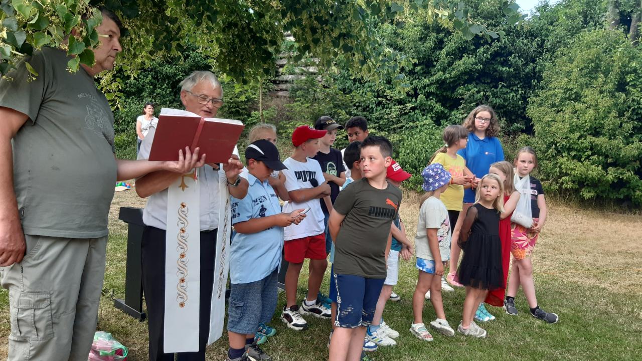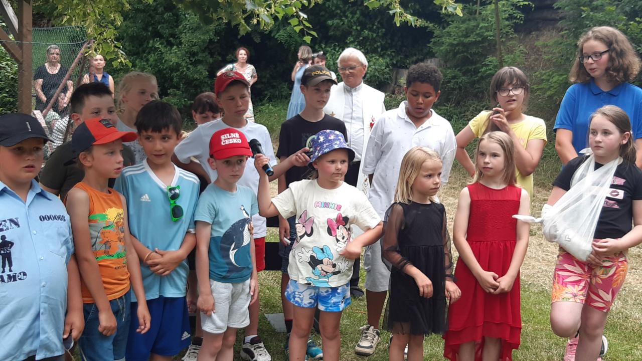 Ve čtvrtek 26. června 2025 jsme u lesíka za školou uspořádali Slavnostní otevření interaktivní naučné stezky s přírodními herními prvky. Na realizaci tohoto projektu jsme získali grant od Nadace VIA a České spořitelny ve výši 100 000,- Kč. Slavnost začala v 16:30 hod. přivítáním všech a poděkováním všem, kdo se na projektu jakkoli podíleli. Naučnou stezku požehnal i kněz - otec Václav Kříž. Společně jsme pak přestřihli pásku a otevřeli tak naučnou stezku veřejnosti, pokřtili jsme školní Atlas zvířat celého světa, který vytvořily děti z ŠD a MŠ za pomoci paní vychovatelky a paní učitelek z mateřské školy. Následovalo vystoupení žáků základní školy, kteří všem návštěvníkům zazpívali lidové písně a zahráli na flétnu a kytaru. Kdo měl zájem, mohl se zúčastnit komentované prohlídky celého areálu. Nechybělo ani chutné občerstvení z naší školní kuchyně, aby mohli rodiče ochutnat, co jejich děti v mateřské škole jí. Děkujeme všem za účast a těšíme se, že bude naučná stezka sloužit dlouhá léta všem návštěvníkům.